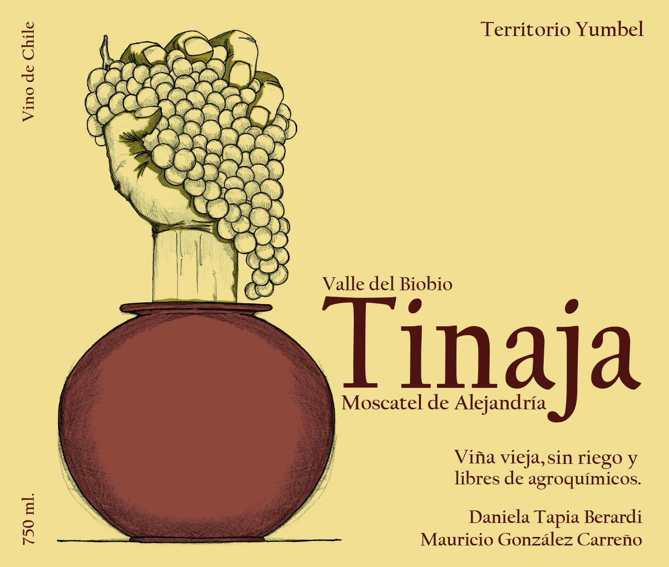 Moscatel de alejandria fermentado y guardado con sus pieles por 6 meses en tinajas de arcilla de mas de 150 años rescatadas del olvido.
